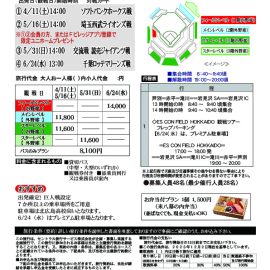 5 1月 2026 エスコンフィールド北海道ファイターズ戦観戦ツアー central | 出発日 ①4/1 1(土)14:00 ソフトバンクホークス戦 ②5/16(土)14:00西武ライオンズ戦③5/31(日)14:00 読売ジャイアンツ戦④6/24(水)13:00 千葉ロッテマリーンズ戦 旅行代金(大人お一 … Continued READ MORE