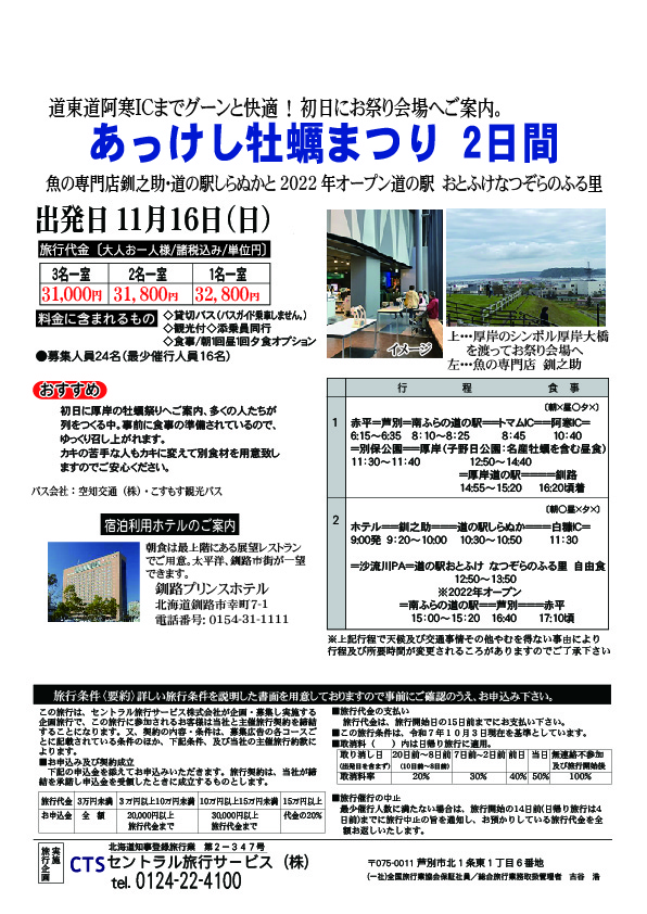 厚岸(子野日公園 名産牡蠣を含む昼食)